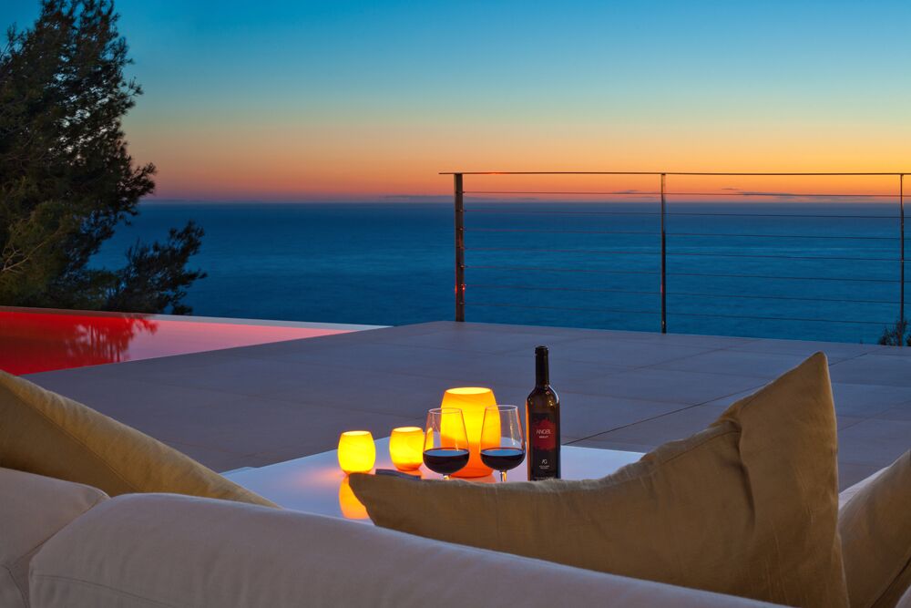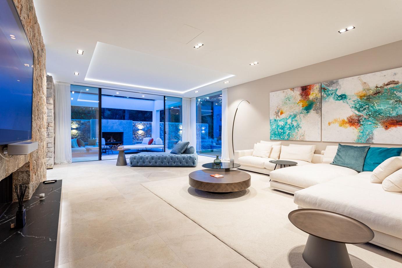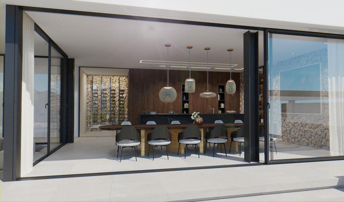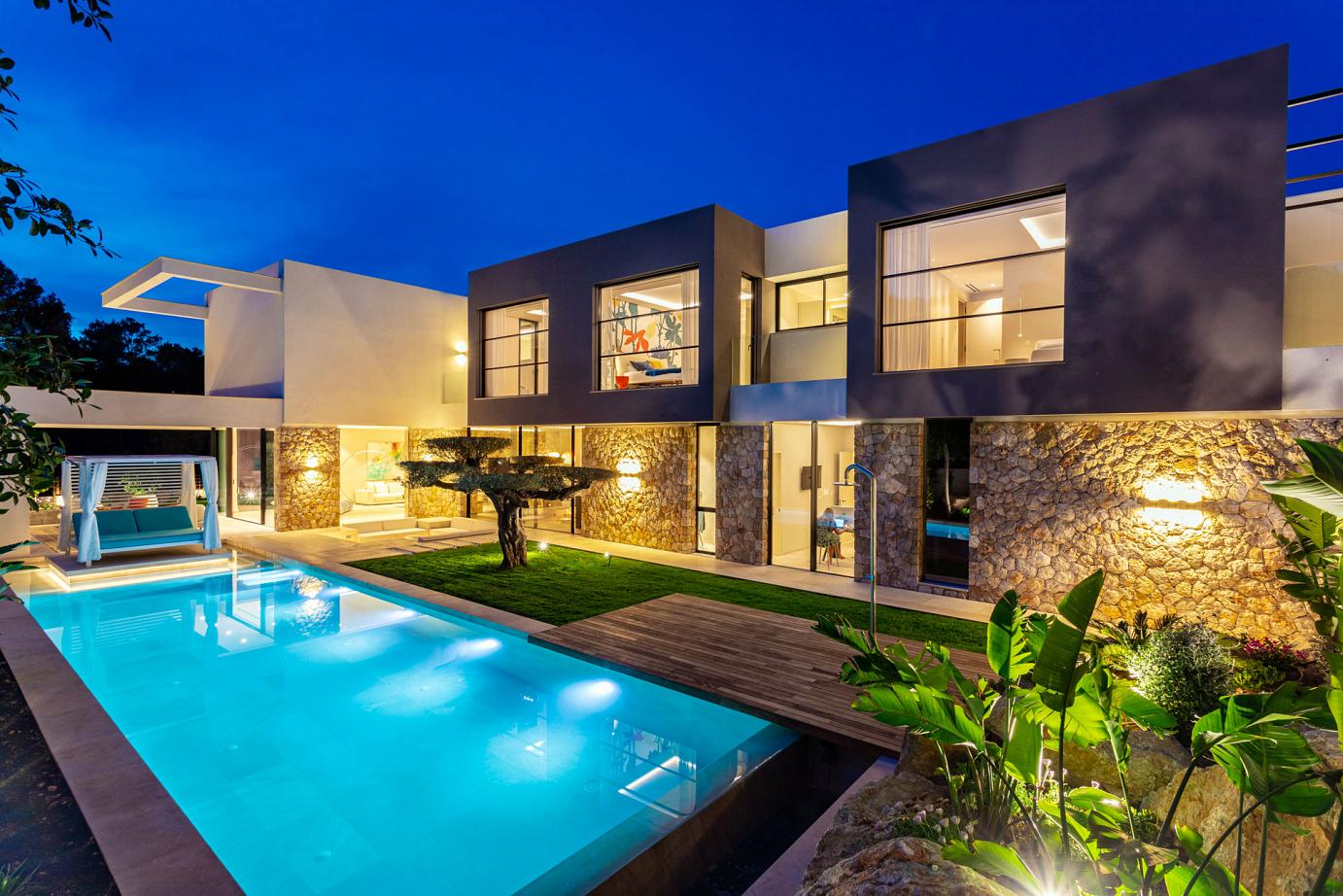 This colorful and modern Ibiza-style luxury chalet offers 440 m2 of living space. It's in a prime and private position in famous Cala Llamp at the end of a cul-de-sac. No doubt the best position beyond first sealine in Cala Llamp. The Final townhall building inspection was approved in 2018.