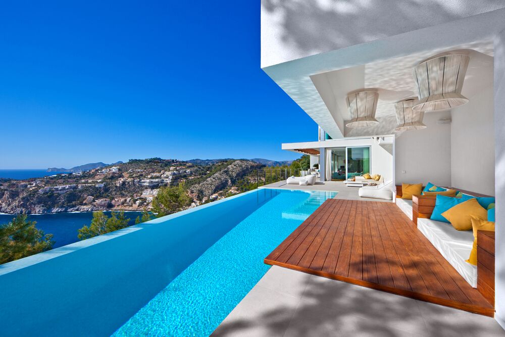 This spacey luxury estate lies on the hill of Marmacen, one of the most sought-after neighborhoods in Port Andratx. You'll enjoy 650 m2 of generous living space on a 1500 m2 block of land, 250 m2 of private terraces, and an 18 m swimming pool. Finished in 2019.